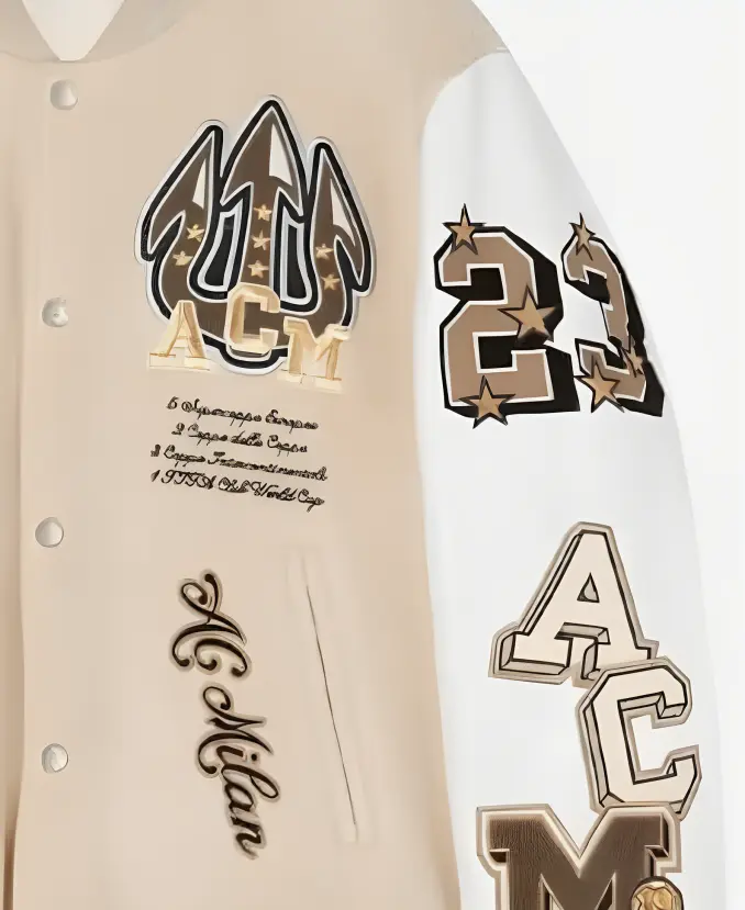 AC Milan Football Off White Varsity Jacket For Men And Women On Sale