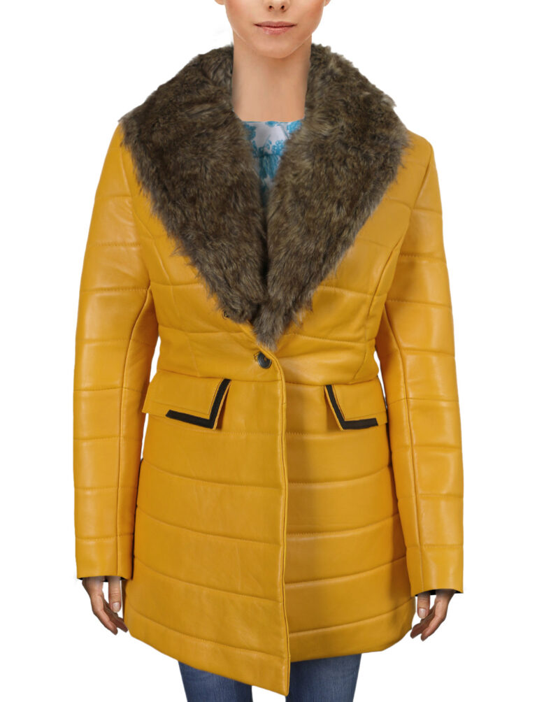 Alexandra women’s yellow shearling lambskin leather overcoat