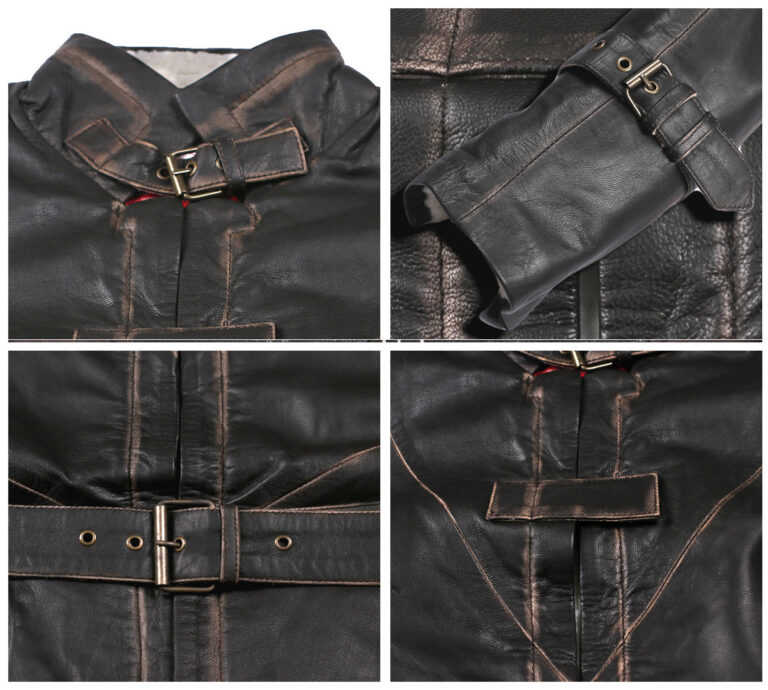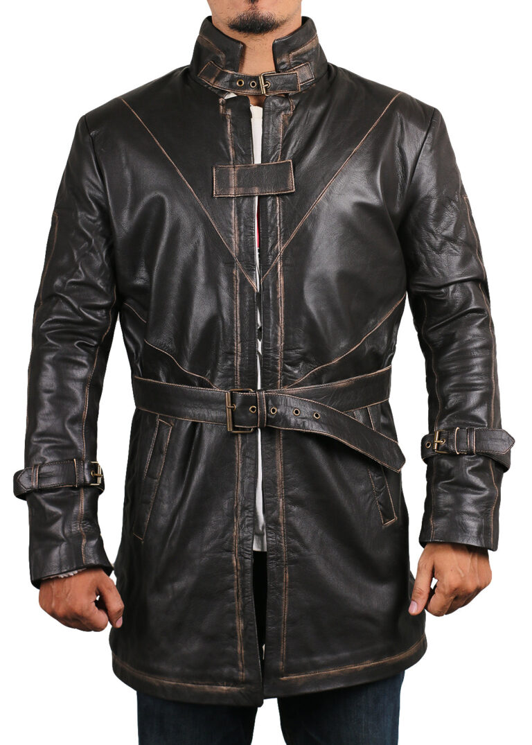 Anthony Men’s Genuine Cow Leather Trench Overcoat in Brown