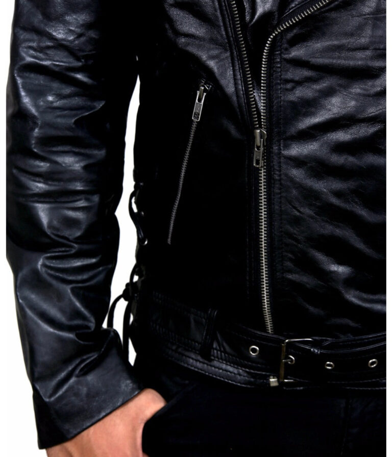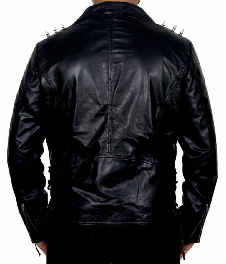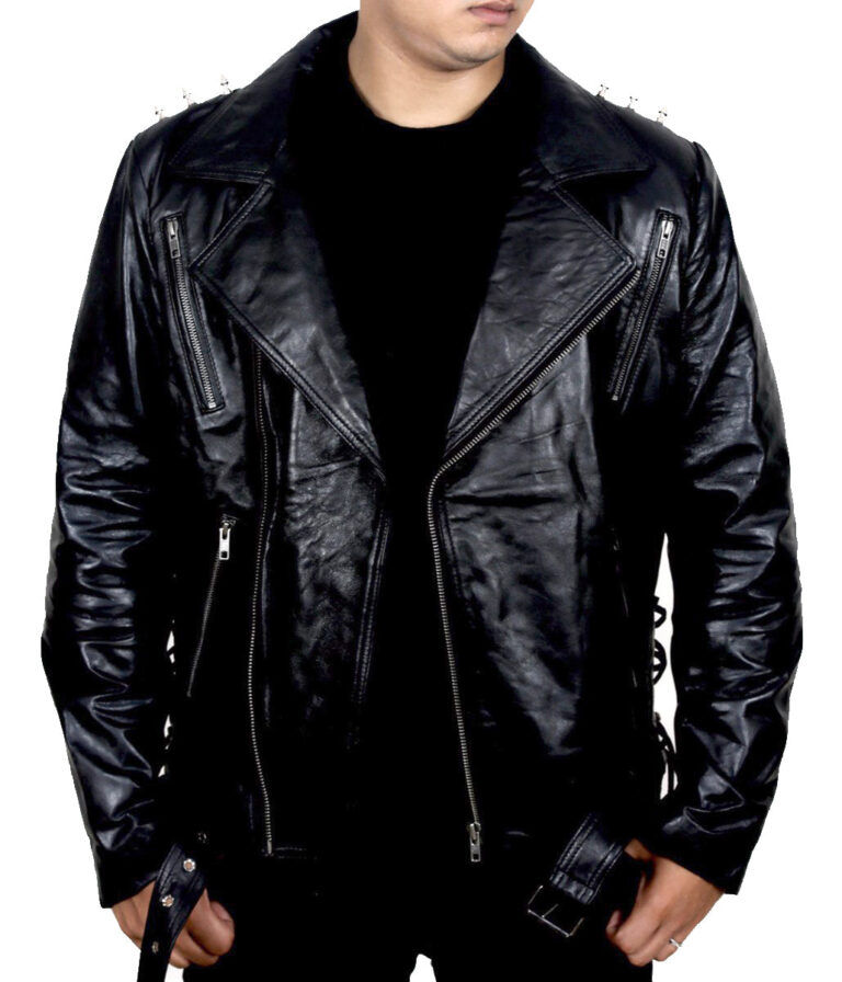 Brandon Men’s Ghost Rider Black Cow Leather Double Rider Motorcycle Jacket
