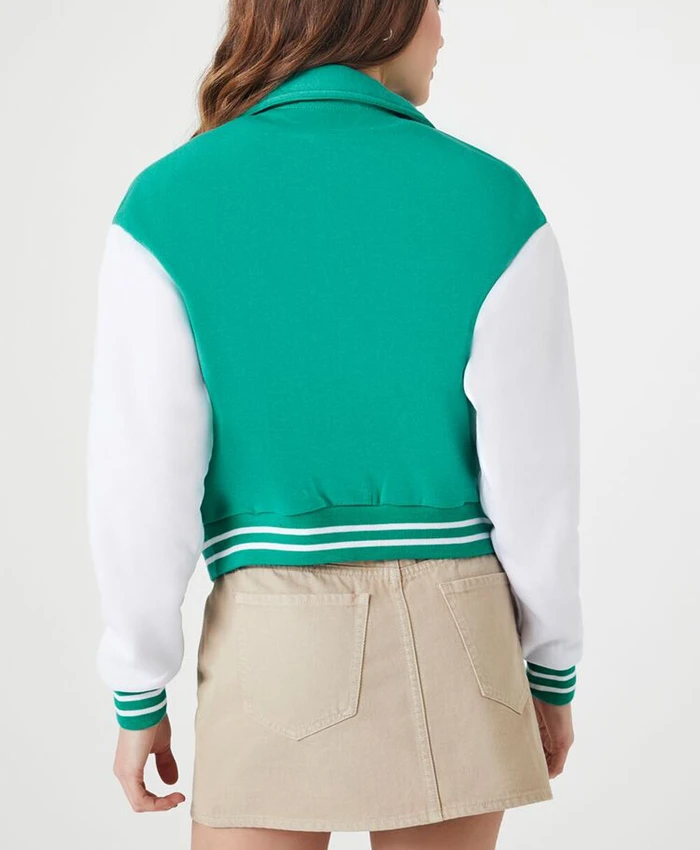 Carmine Elegant Cropped Sea Green Varsity Jacket