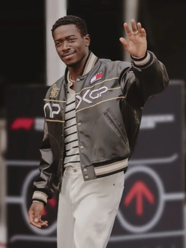 Damson Idris F1 Movie APXGP Leather Varsity Bomber Jacket