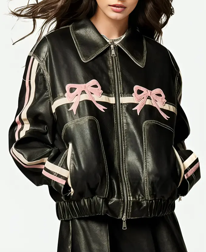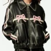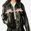 Diddi Moda Bow Pink Knot Real Leather Jacket Women