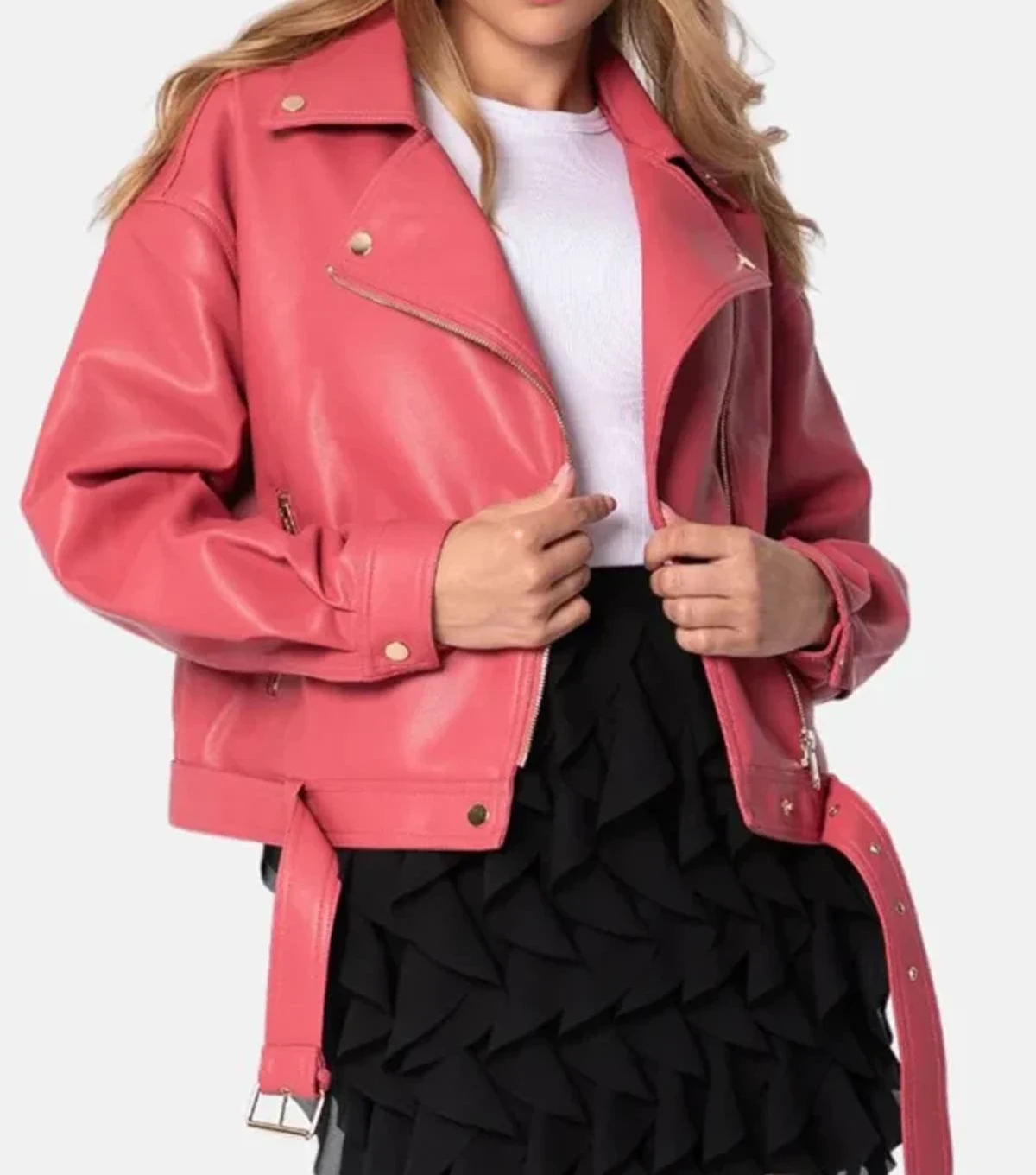 Izze Sleek Plain Pink Biker Women Leather Jacket