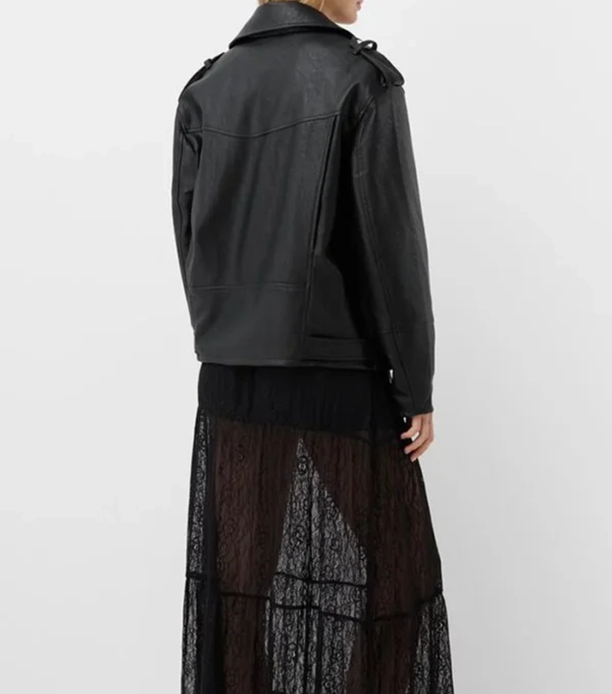 Jaycie Multi Pockets Black Leather Biker Jacket