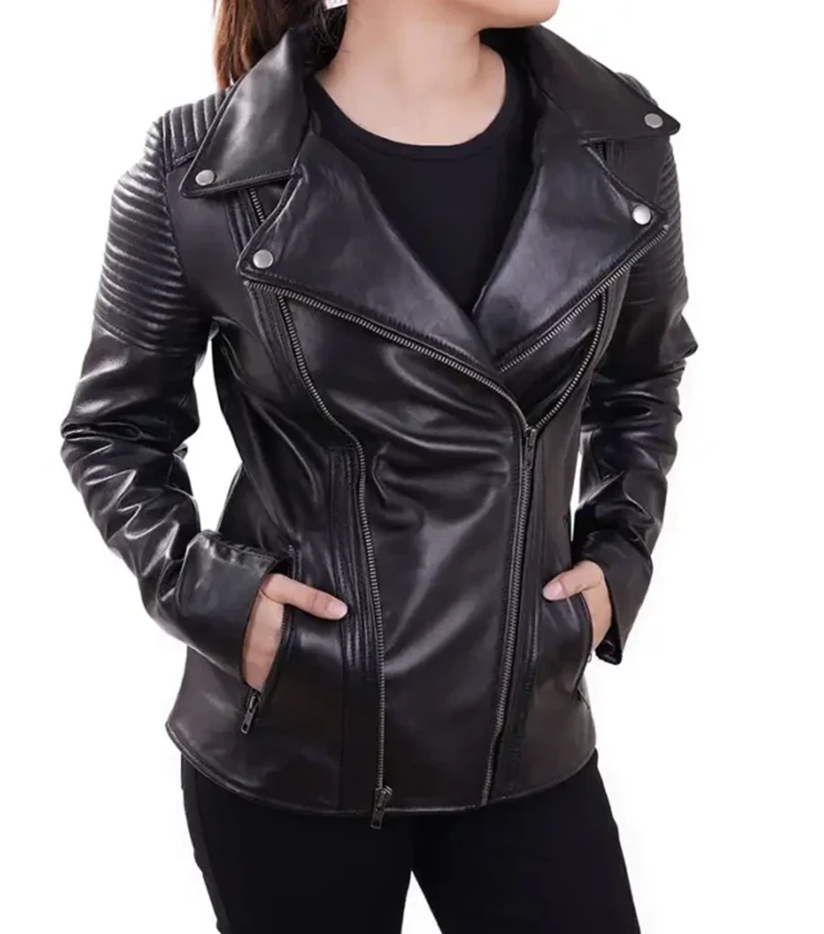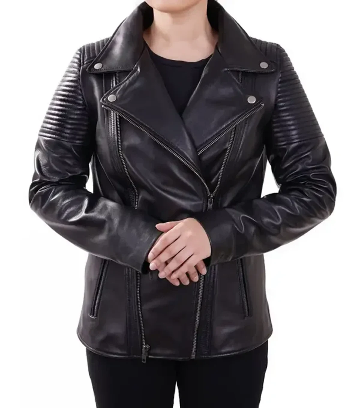 Joby Quilted Shoulder Real Leather Biker Jacket