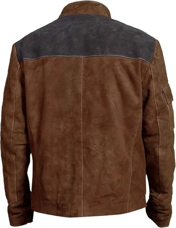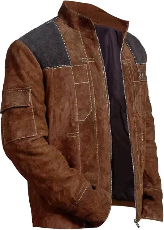 John men’s genuine cow suede leather Star Wars jacket in tan