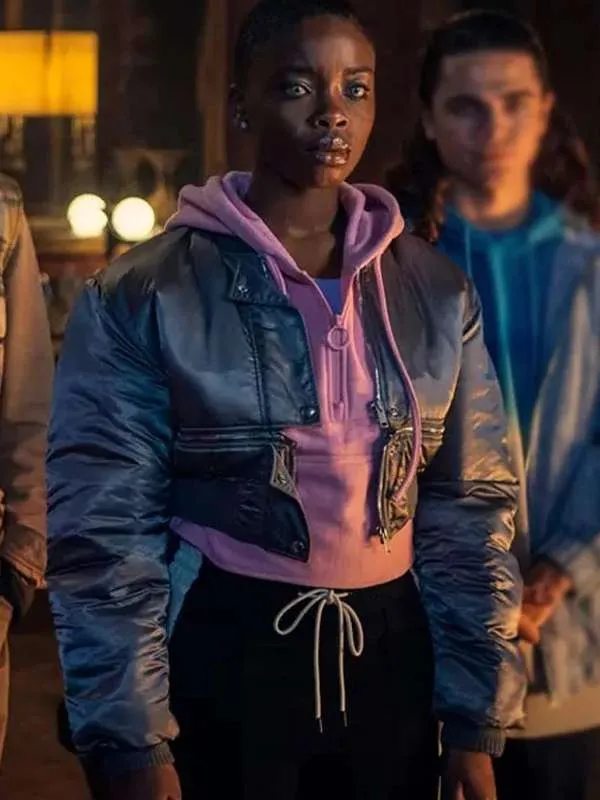 The cropped cut ends at the waist, accentuating balance and strength. It moves with purpose, not hesitation. This jacket channels Bianca’s power without costume theatrics. It’s a wearable symbol of pride, elegance, and unspoken strength woven into fabric and form.