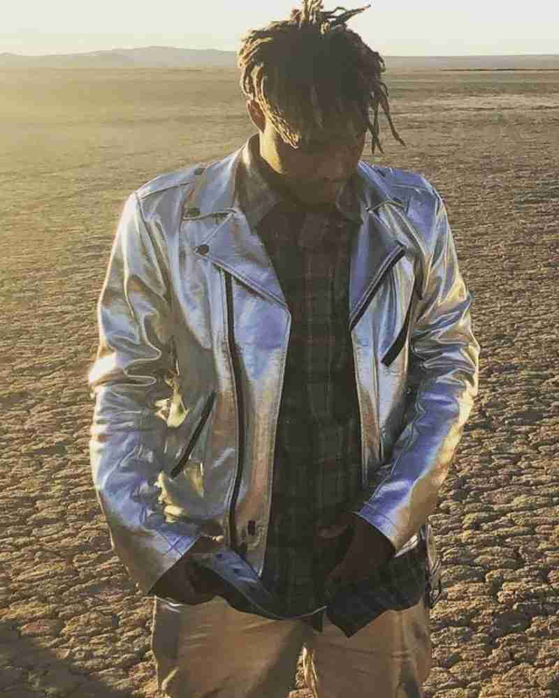Juice Wrld on Drugs Silver Biker Leather Jacket