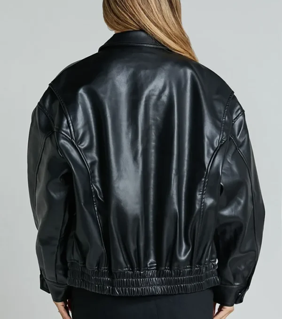 Kaitlyn Black Oversized Leather Bomber Jacket
