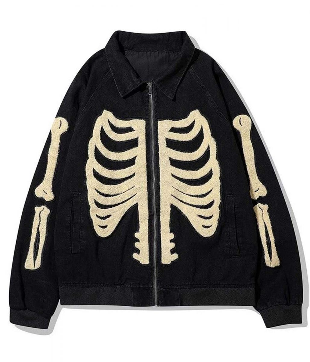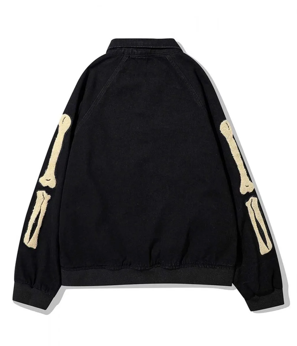 Nevaeh Skulls Patchwork Denim Bomber Jacket