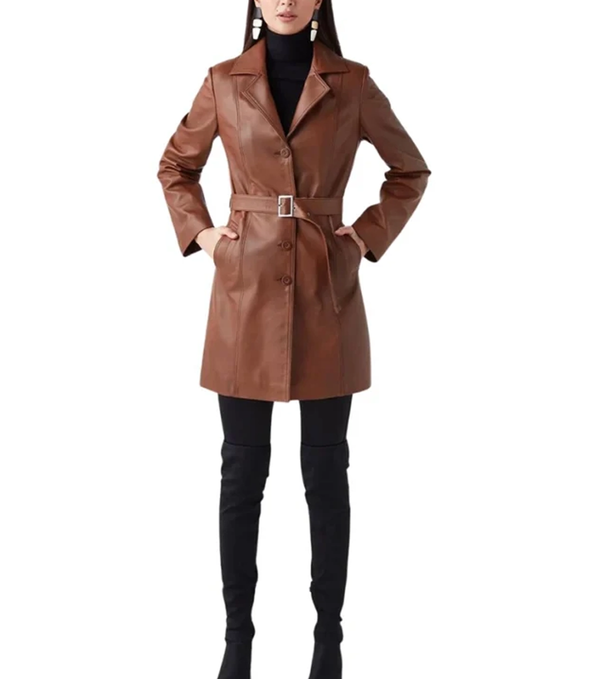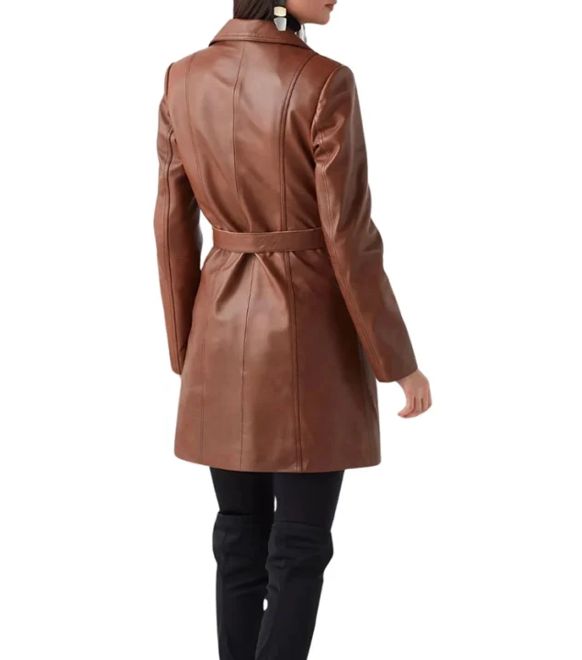 Nikolai Sleek Fit Brown Leather Trench Coat