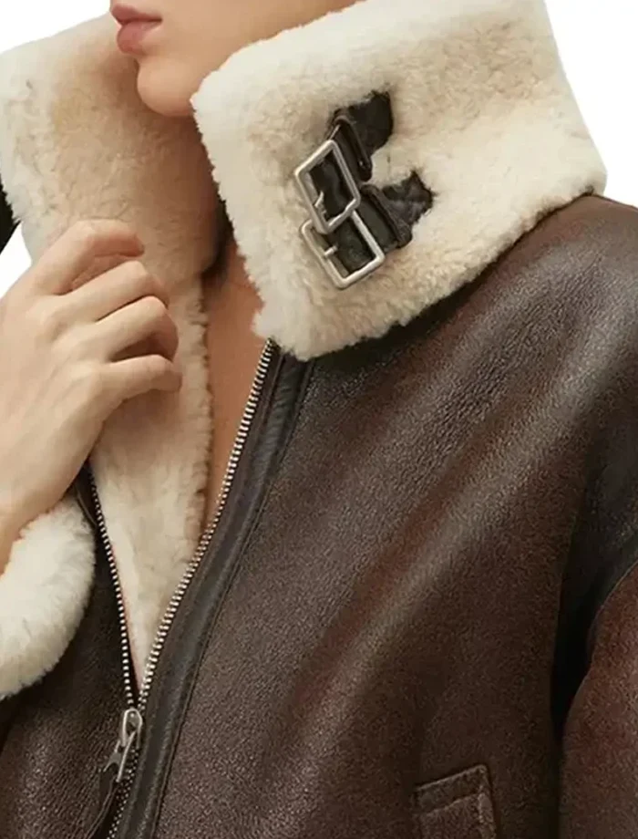 Rosie Brown B3 Shearling Bomber Leather Aviator Jacket