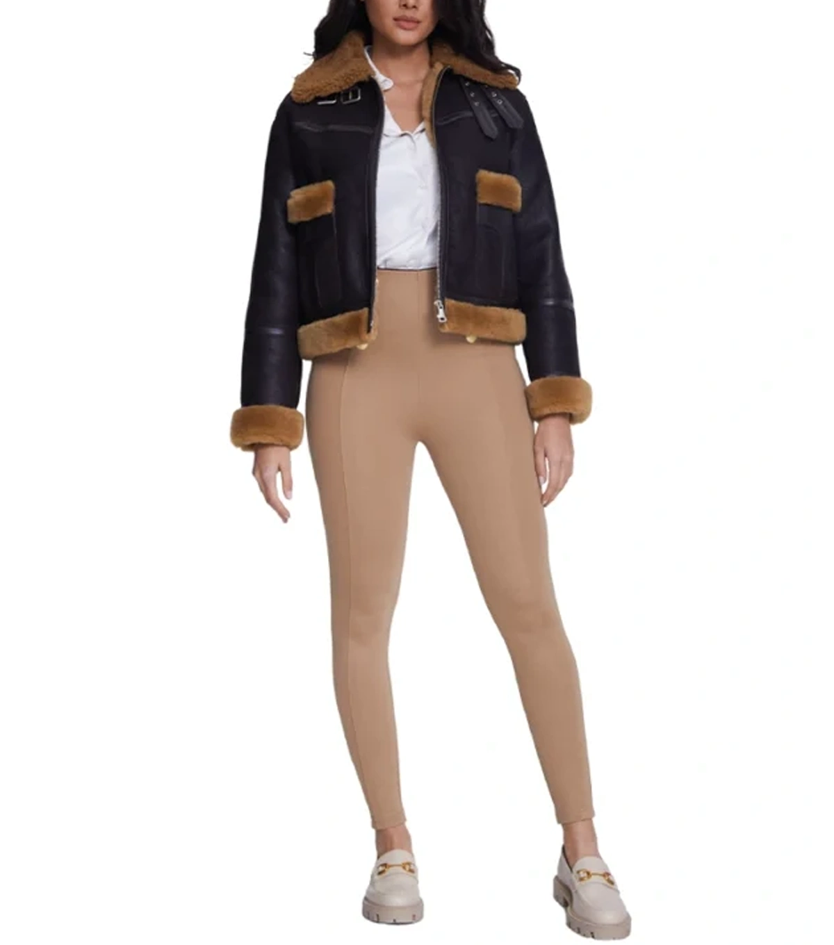 Sabrina Shearling Brown Fur Trim Real Leather Jacket