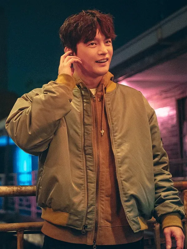 This bomber jacket channels the energy of Seo In-guk’s character Won-seung, the agile monkey angel. Its deep black shade absorbs light like quiet purpose, mirroring his sharp wit and nimble moves.