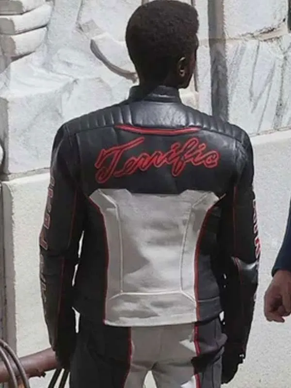 Crafted from premium-quality leather, the jacket ensures both durability and sophistication. Its sleek finish, fine stitching, and tailored cut make it stand out while offering a comfortable fit. With functional details like a smooth front zipper, spacious pockets, and a soft inner lining, it balances practicality with style. The bold patterns and accents inspired by Mr. Terrific’s on-screen look add to its uniqueness, making it a true collector’s piece.